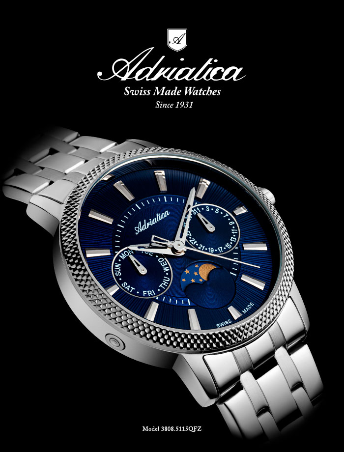 Надпись “Swiss Made” на часах Adriatica воплощает концепцию совокупности высокого швейцарского качества, точности, надежности в сочетании с элегантностью и оригинальностью дизайна. Именно это и есть Adriatica.