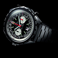 Модель Chronospace появилась на свет в 2010 году. Этот яркий наследник модели Aerospace с хронографом точностью до одной сотой секунды служил не только для индикации времени. Он также оснащен цифровым дисплеем с будильником, календарем, таймером обратного отсчета, временем в формате GMT, а также вторым часовым поясом и функцией логарифмической линейки, которая подчеркивает тесную связь с часами Breitling для профессионалов.