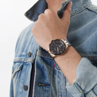 Корпус: Корпус выполнен из высококачественной стали с повышенной устойчивостью к коррозии цвета розового золота, с PVD-покрытием чёрного цвета по безелю. Чёрный циферблат. Стрелки позолоченные, полированные с покрытием Super-LumiNova®. Сапфировое стекло с антибликовым покрытием. Заводная головка с защитой. Завинчивающаяся задняя крышка. Заводная головка и кнопки управления хронографом с двойной прокладкой для герметичности. Диаметр: 43 мм. Водонепроницаемость: 200 м.