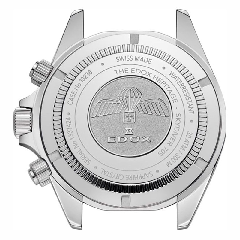 Корпус: Корпус из высококачественной нержавеющей стали, безель с частичным PVD покрытием. Синий циферблат. Часовые индексы и стрелки стальные, полированные с покрытием Super-LumiNova®. Сапфировое стекло с антибликовым покрытием. Однонаправленный безель вращается со щелчками в направлении против хода стрелок, рельефная поверхность с гравированной разметкой в виде больших цифр. Завинчивающаяся заводная головка с защитой. Диаметр: 44 мм. Водонепроницаемость: 300 м.