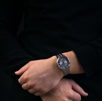 Ремешок: Браслет с литыми звеньями выполненными из нержавеющей стали. Раскладывающаяся браслетная застежка с дополнительным защитным фиксатором украшена гравировкой с названием марки.