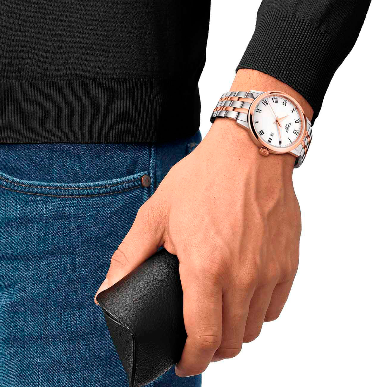 Корпус: Корпус выполнен из высококачественной стали 316L с частичным розовым PVD покрытием золотом. Светлый циферблат. Метки в виде римских цифр. Клиновидные стрелки в стиле Dauphine. Сапфировое стекло. Рифленая заводная головка. Диаметр корпуса 42 мм. Водозащита 50 метров.
