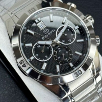 Функции: Индикация часов, минут и секунд при помощи центральных стрелок. Дата, хронограф и текущее время в 24-х часовом формате.