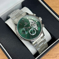 Корпус: Стильные мужские часы со скелетонизированным циферблатом. Корпус изготовлен из нержавеющей. Циферблат зелёного цвета. Часовые индексы и стрелки с люминесцентным покрытием. Прочное минеральное стекло обеспечит защиту часов от повреждений. Прочная задняя крышка. Диаметр: 42 мм. Водонепроницаемость: 50 м.