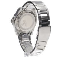 Корпус: Корпус выполнен из высококачественной стали с повышенной устойчивостью к коррозии, поверхности с матовой шлифовкой – сатинированием и полировкой до зеркального блеска. Градиентный циферблат синего цвета с накладными метками в виде штрихов. Метки и стрелки с люминесцентным покрытием SuperLuminova, которое светится в темноте после непродолжительной зарядки на свету. Сапфировое стекло защищает циферблат от царапин. Диаметр: 40 мм. Водонепроницаемость 100 м позволяет использовать часы для плавания.