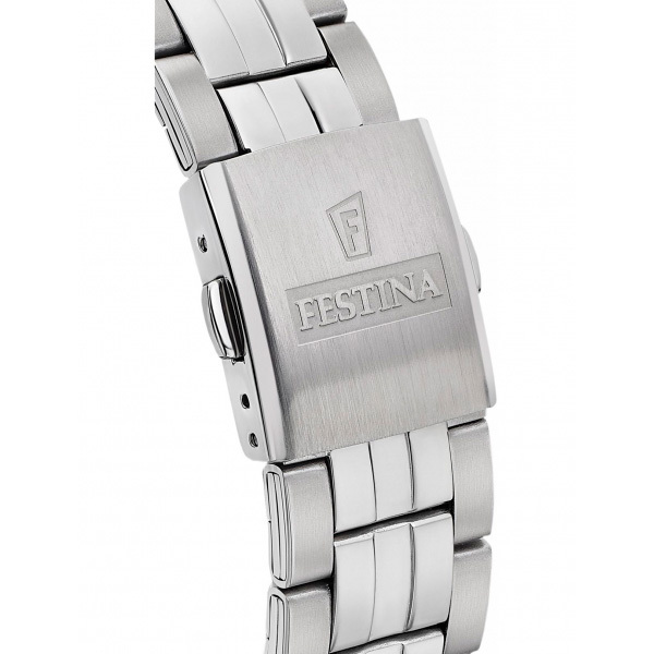 Ремешок: Надежный, прочный браслет из нержавеющей стали. Застёжка с системой блокировки, украшена фирменным логотипом Festina.