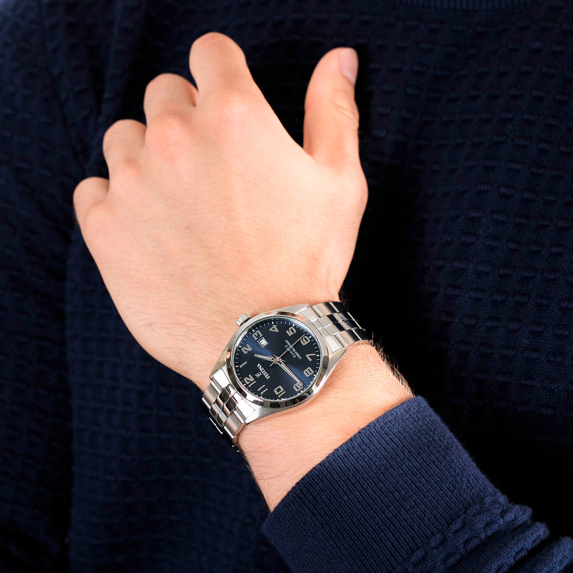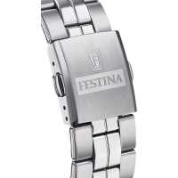 Ремешок: Надежный стальной браслет с раскладывающейся застежкой, которая украшена фирменным логотипом Festina.