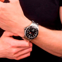 Корпус: Ударопрочный корпус часов сделан из нержавеющей стали. Однонаправленный вращающийся безель из нержавеющей стали с PVD-покрытием чёрного цвета. Чёрный циферблат со стрелками и часовыми индексами в виде штрихов с нанесенным люминесцентным покрытием, которое светится в темноте после непродолжительной зарядки на свету. Сапфировое стекло устойчивое к возникновению царапин. Завинчивающаяся заводная головка с защитой. Диаметр: 45 мм. Водонепроницаемость: 200 м.