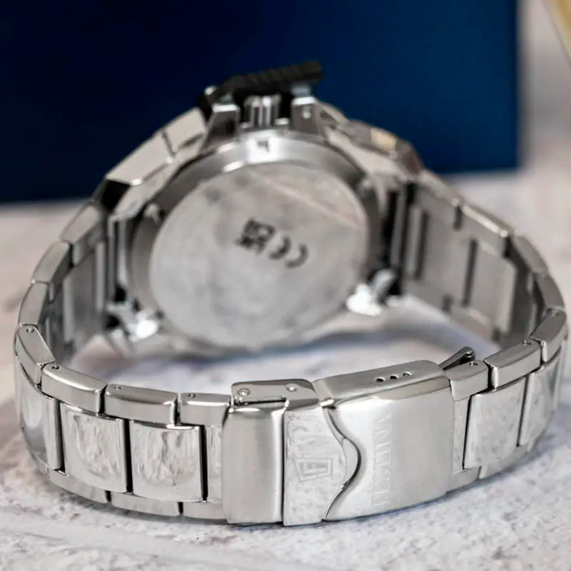 Ремешок: Надежный стальной браслет с раскладывающейся застежкой и фиксатором, украшена фирменным логотипом Festina.