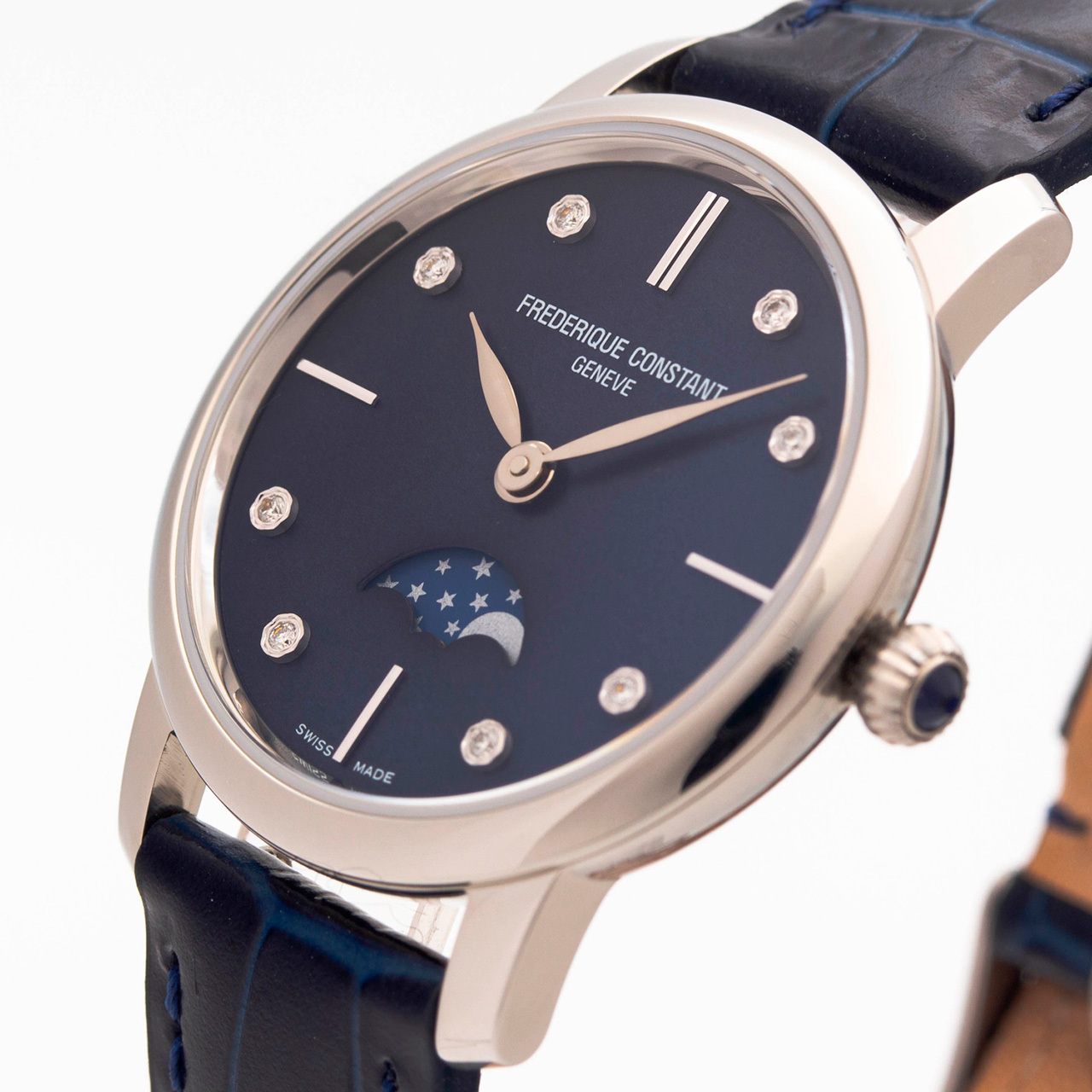 Корпус: Корпус выполнен из высококачественной стали с повышенной устойчивостью к коррозии, поверхности с полировкой до зеркального блеска. Синий перламутровый циферблат. Часовые метки украшены бриллиантами. Стрелки часов и индексы изготовленны из полированной стали. Сапфировое стекло. Диаметр 30 мм. Водостойкость 30 м.