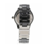 Корпус: Корпус выполнен из чёрной керамики, придающей часам изысканность и устойчивость к царапинам. Циферблат чёрного цвета оформлен серебристыми метками с эффектом мерцания, стрелки с люминесцентным покрытием, обеспечивающим хорошую читаемость в темноте. Циферблат защищён минеральным стеклом. Диаметр: 38 мм. Водонепроницаемость 50 м. позволяет использовать часы в повседневных условиях, защищая от дождя и брызг.