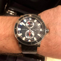 Корпус: Корпус выполнен из титанового сплава, его диаметр 45 мм, а высота 14,6 мм. Безель из нержавеющей стали с каучуковым покрытием верхней плоскости. Рельефный циферблат черного цвета с накладными индексами. Люминесцентное покрытие стрелок и на разметке циферблата. Сапфировое стекло с антибликовым покрытием и лупой над апертурой даты. Водостойкость 200 метров.