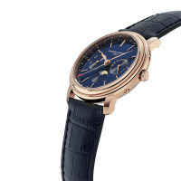 Ремешок: Ремешок тёмно-синего цвета из высококачественной кожи с тиснением под аллигатора. Литая классическая застежка с эмблемой часовой марки.