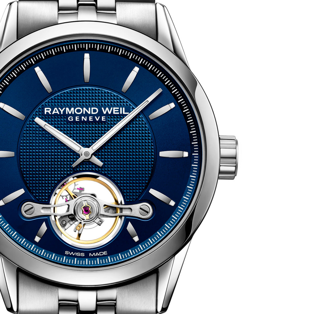 Ремешок: Браслет из высококачественной стали с 5 рядами литых звеньев. Браслетная застежка, раскладывающаяся при нажатии на кнопки с двойной системой блокировки, украшена гравировкой Raymond Weil.