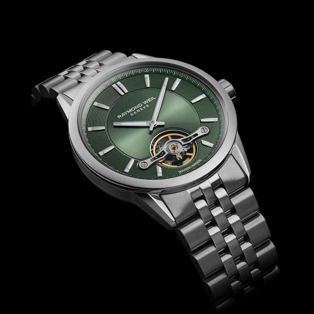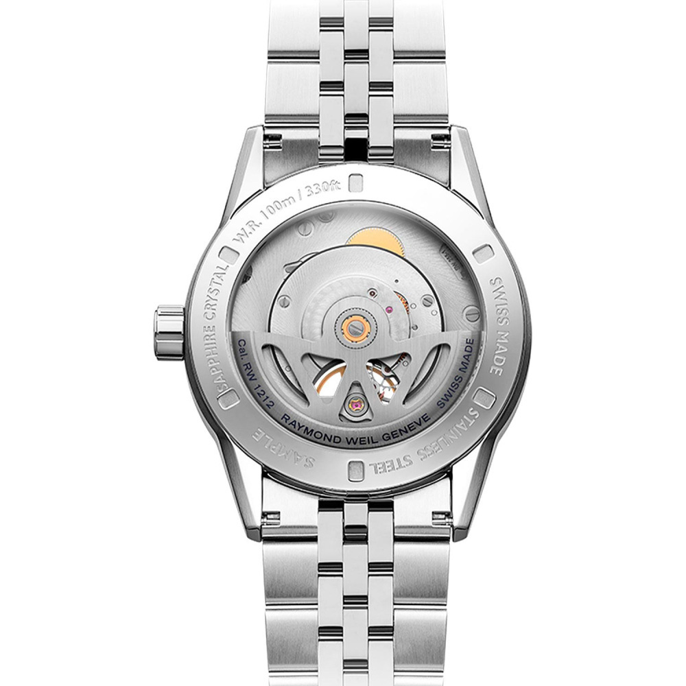 Ремешок: Браслет из высококачественной стали с 5 рядами литых звеньев. Браслетная застежка, раскладывающаяся при нажатии на кнопки с двойной системой блокировки, украшена гравировкой Raymond Weil.