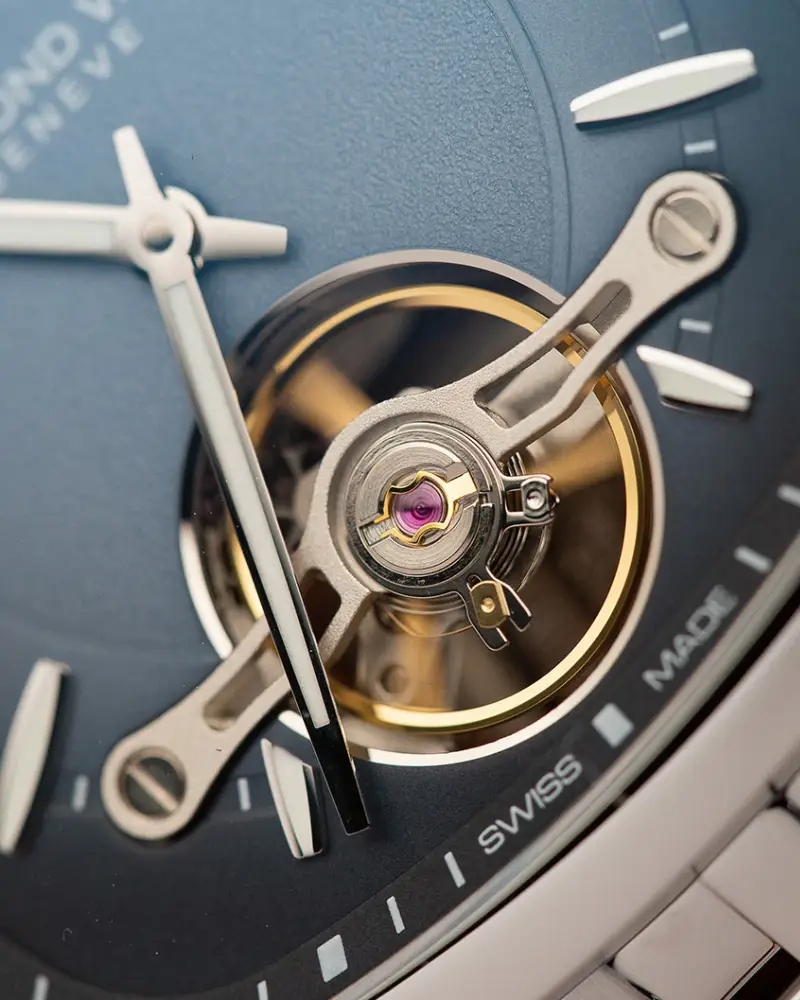 Механизм: Швейцарский механизм с автоподзаводом, калибр RW1212, с запасом хода 38 часов и частотой 28 800 пк/час. Видимая со стороны циферблата работа анкерного спуска и колебания балансового колеса. Частично скелетонизированные мосты и платина механизма.