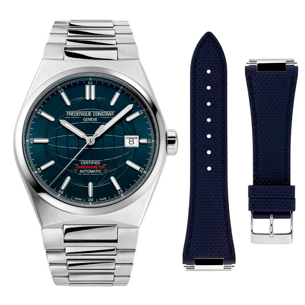 Механизм: Швейцарский механизм FC-303 с автоматическим подзаводом создан имеет запас хода 38 часов, частота колебаний баланса 28 800 пк/час (4Hz), 26 рубинов в качестве камневых опор колесной системы и палет анкерного спуска. Точность хода механизма часов линейки отрегулирована в соответствии с сертификатом C.O.S.C.