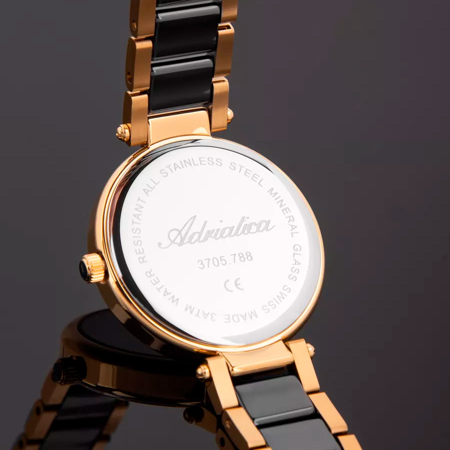 Ремешок: Браслет выполнен из нержавеющей стали с PVD покрытием желтого золота и керамическими вставками чёрного цвета.