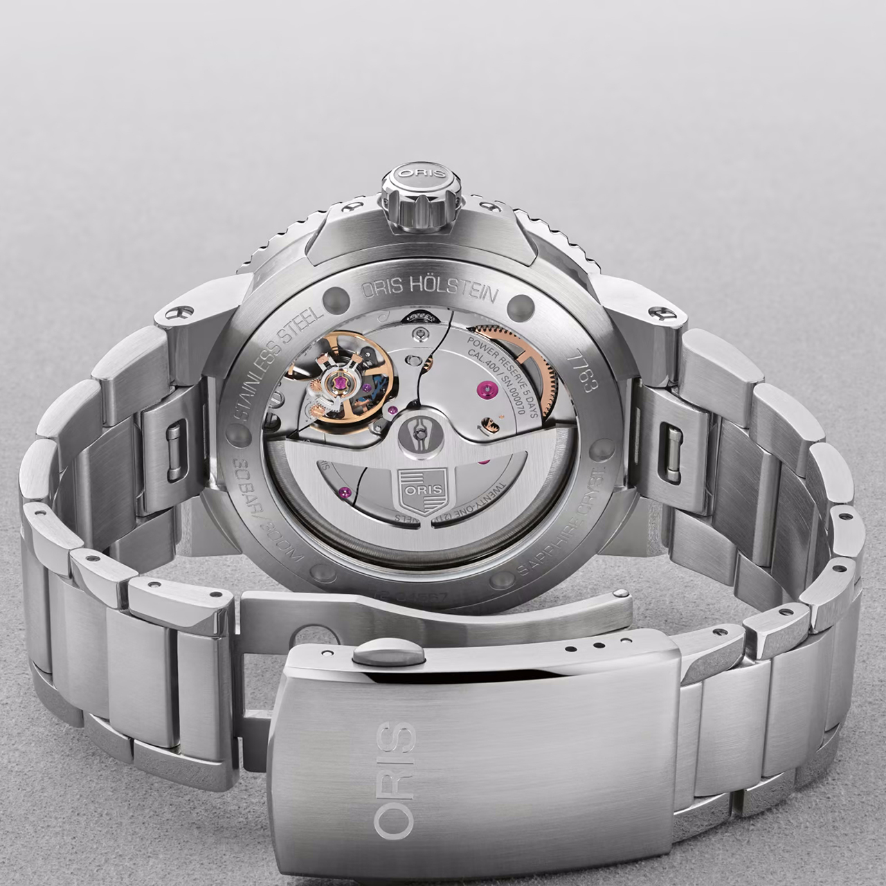 Ремешок: Браслет из нержавеющей стали с запатентованной компанией Oris раскладывающейся застёжкой.