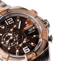 Ремешок: Браслет выполнен из нержавеющей стали с частичным IP(ионное) покрытием. Браслетная раскладывающаяся застежка с гравировкой логотипа. Каждые часы бренда Chronoforce имеют уникальную упаковку, в виде мотоциклетного шлема.