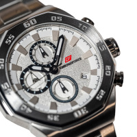 Ремешок: Контрастный браслет изготовлен из высококачественной нержавеющей стали. Каждые часы бренда Chronoforce имеют уникальную упаковку, в виде мотоциклетного шлема.