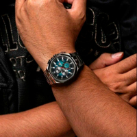 Корпус: Корпус выполнен из нержавеющей стали AISI 304, что придает часам особую прочность и стойкость от повреждений. Циферблат синий, многослойный, с горизонтальными полосками, который дополняет акцентный безель. Контрастные цифры и стрелки покрыты люминесцентным покрытием для лучшей видимости в темноте. Закаленное минеральное стекло Hardlex разработанное компанией Seiko Watch Corporation, которое обладает высокой устойчивостью к ударам и царапинам. Диаметр 40 мм. Водозащита 5 бар (50 метров).