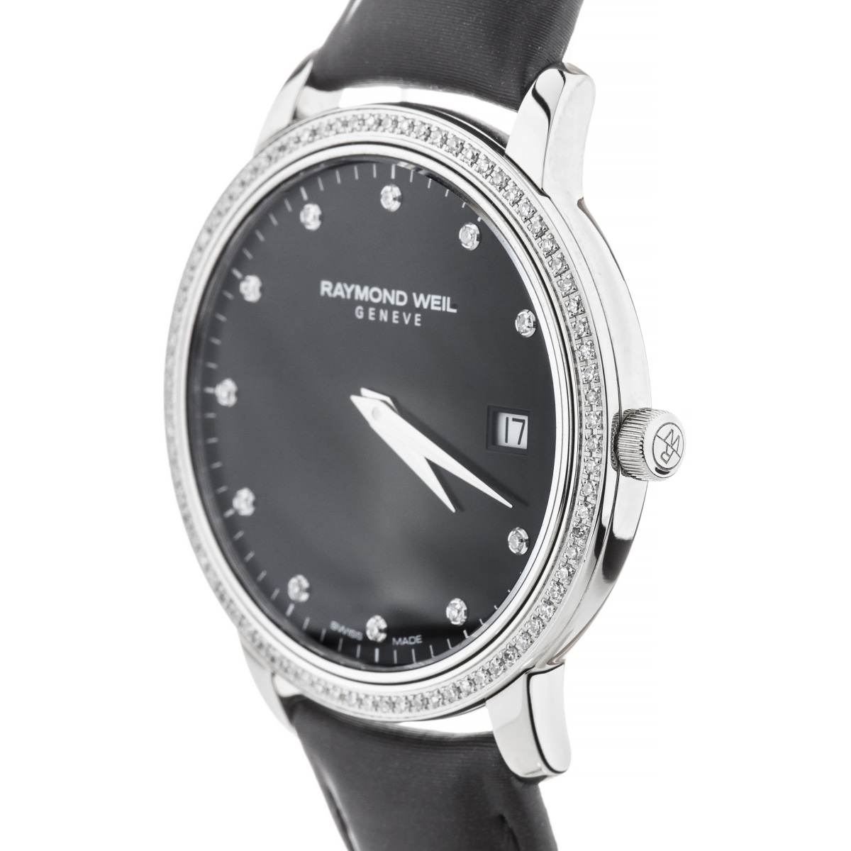 Корпус: Корпус изготовлен из нержавеющей полированной стали, украшен 79 бриллиантами. Чёрный циферблат с условными часовыми бриллиантовыми индексами. Серебристые стрелки. Сапфировое стекло с антибликовым покрытием.  Диаметр 34 мм. Водостойкость 50 м.