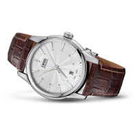 Корпус: Многокомпонентный стальной корпус. Серебристый циферблат, украшенный узором "гильоше". Никелевые часовая, минутная стрелки с люминофором Super-LumiNova. Сапфировое стекло с антибликовым покрытием. Диаметр 40.5 мм. Водостойкость 50 м.