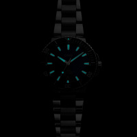 Корпус: Многокомпонентный корпус из нержавеющей стали, синий керамический ободок с минутной шкалой. Сапфировое стекло, выпуклое с обеих сторон, внутреннее антибликовое покрытие. Индексы и стрелки покрыты составом Superluminova. Синий циферблат. Завинчивающаяся прозрачная задняя крышка корпуса с минеральным стеклом. Завинчивающаяся заводная головка из нержавеющей стали. Диаметр 43,5 мм. Водонепроницаемость 300 метров.
