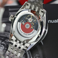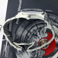 Корпус: Многокомпонентный корпус из нержавеющей стали. Скелетон. Черное циферблатное кольцо, часовая шкала. Сапфировое стекло, выпуклое с обеих сторон, внутреннее антибликовое покрытие. Диаметр 39 мм. Водонепроницаемость 100 метров.