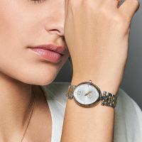 Корпус: Нержавеющая сталь с PVD-покрытием из розового золота. Серебристый циферблат. Сапфировое стекло защищает циферблат с фирменным узором арабески. Размер 26х37,1 мм. Водостойкость 50 м.