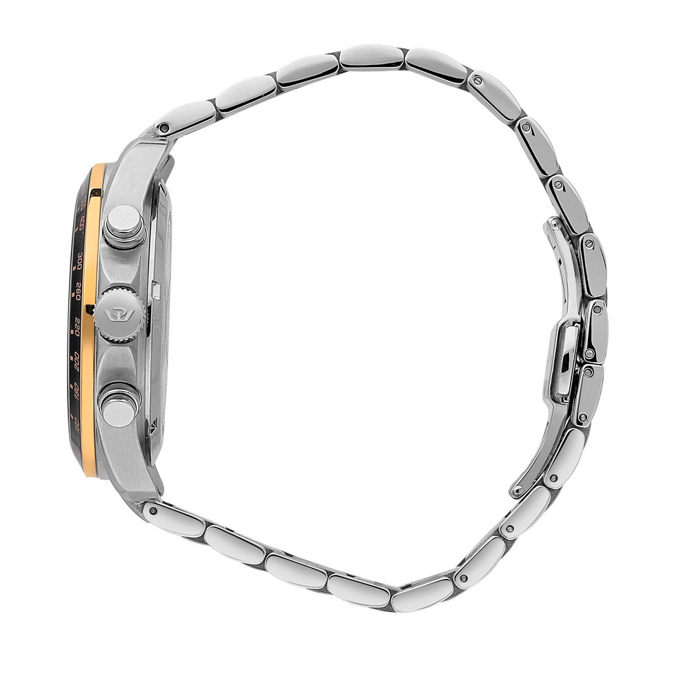 Корпус: Корпус выполнен из высококачественной стали с повышенной устойчивостью к коррозии, поверхности с матовой шлифовкой – сатинированием и полировкой до зеркального блеска с частичным PVD покрытием. Циферблат чёрного цвета. Накладные позолоченные часовые индексы и стрелки с люминесцентный составом. Сапфировое стекло, это лучшее стекло для наручных часов, которое не царапается при механическом воздействии, его можно повредить только алмазом. Диаметр корпуса: 44 мм. Водозащита до 100 метров.