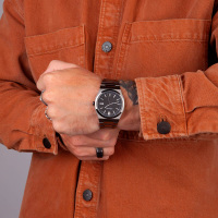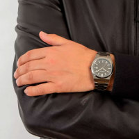 Ремешок: Браслет выполнен из нержавеющей стали с PVD покрытием чёрного цвета. Браслетная раскладывающаяся застежка с гравировкой логотипа.