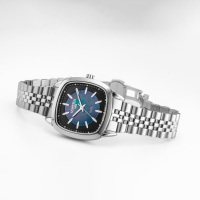 Корпус: Корпус изготовлен из высококачественной нержавеющей стали, марки 316L. Черный перламутровый/матовый циферблат. Накладные часовые индексы и стрелки выполнены из полированной стали с люминесцентным покрытием Super-Luminova, которое светится в темноте после непродолжительной зарядки на свету. Сапфировое стекло с антибликовым покрытием защищает циферблат от царапин и обеспечивает отличную читаемость при любом освещении. Рифлёная заводная головка. Размер корпуса: 32 x 32 мм. Водонепроницаемость: 50 метров.