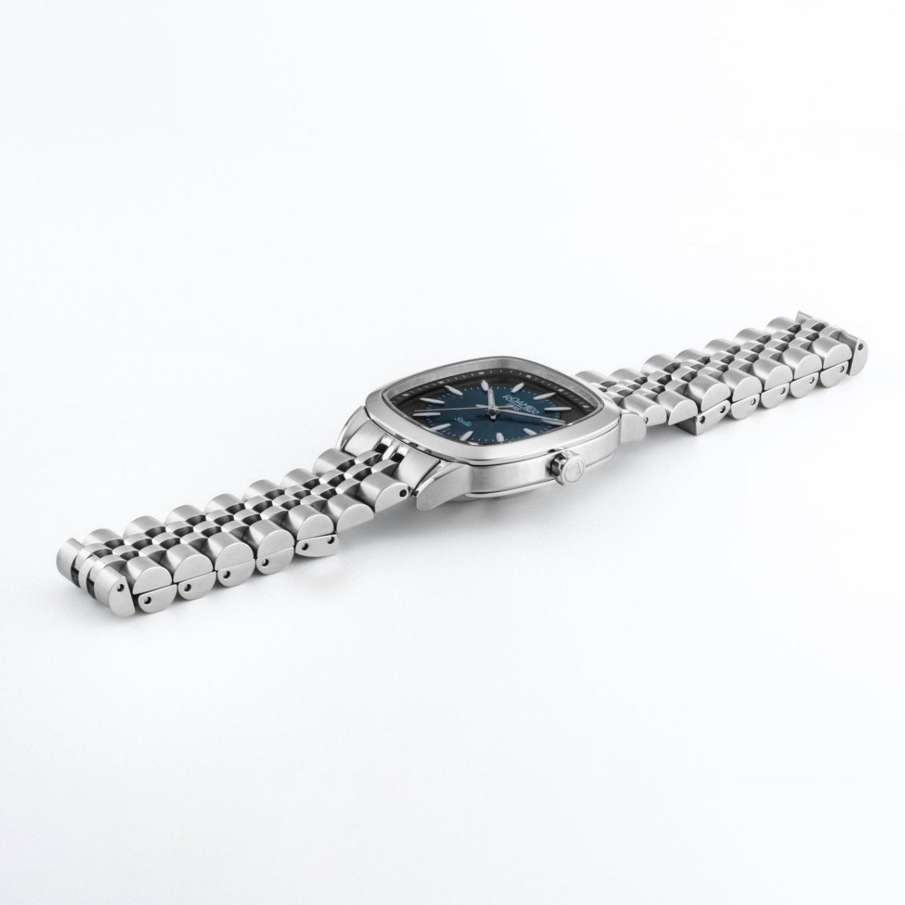 Ремешок: Браслет выполнен из высококачественной стали с повышенной устойчивостью к коррозии, поверхность с матовой шлифовкой – сатинированием и полировкой до зеркального блескаю. Раскладывающаяся застежка с кнопочной фиксацией.