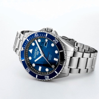 Корпус: Корпус из нержавеющей стали с синим однонаправленным вращающимся безелем обрамляет циферблат. Синий циферблат с солнечными лучами и увеличенной апертурой даты. Стальные накладные часовые метки и стрелки имеют покрытие Superluminova для оптимальной читаемости в условиях низкой освещенности. Устойчивое к царапинам сапфировое стекло с антибликовым покрытием. Завинчивающаяся заводная головка с защитой. Диаметр: 43 мм. Водозащита: 200м.