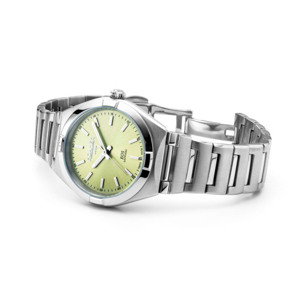 Корпус: Корпус выполнен из высококачественной нержавеющей стали 316L с полировкой и матовой шлифовкой - сатинированием. Циферблат бледно-зелёного цвета, выполнен по технологии Sunray (солнечные лучи). Метки в виде штрихов и стрелки с люминесцентным покрытием Super-LumiNova. Сапфировое стекло с антибликовым покрытием. Рифленая заводная головка. Диаметр: 34 мм. Водонепроницаемость: 50 м.