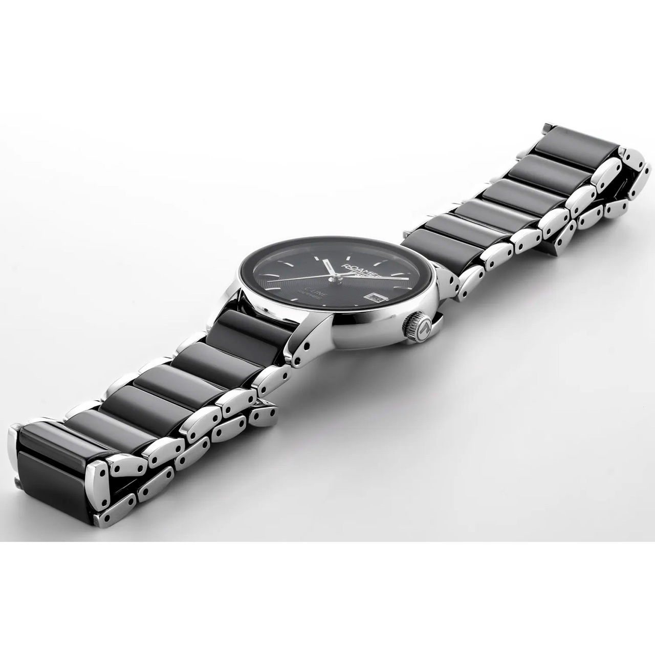 Ремешок: Часы оснащены металлическим браслетом в цвет корпуса с черными керамическими вставками. Браслетная застежка с тройным сложением – «бабочка».