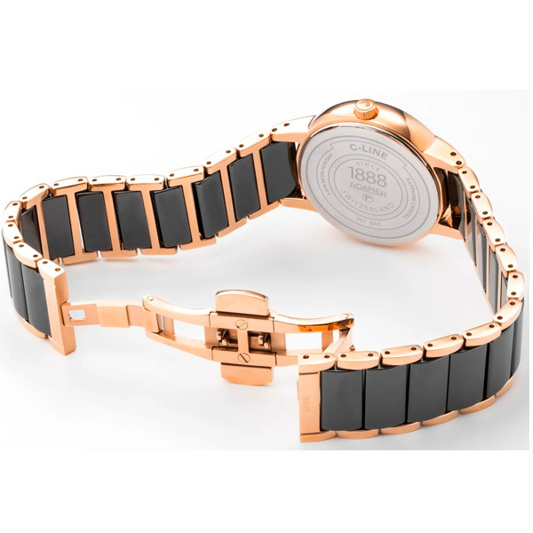 Ремешок: Часы оснащены металлическим браслетом с IP-покрытием и черными керамическими вставками. Браслетная застежка с тройным сложением – «бабочка».
