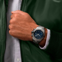 Корпус: Нержавеющая сталь, выпуклое сапфировое стекло с антибликовым покрытием с обеих сторон. Диаметр 45 мм, водонепроницаемость 300 метров. Синий циферблат.