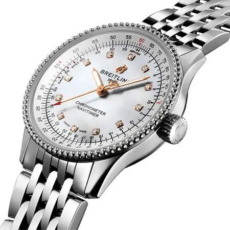 Ремешок: Браслет Navitimer с литыми звеньями в 7 рядов выполнен из нержавеющей стали, ширина 18/16 мм. Раскладывающаяся браслетная застежка с дополнительным защитным фиксатором украшена гравировкой и рельефной эмблемой марки.