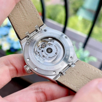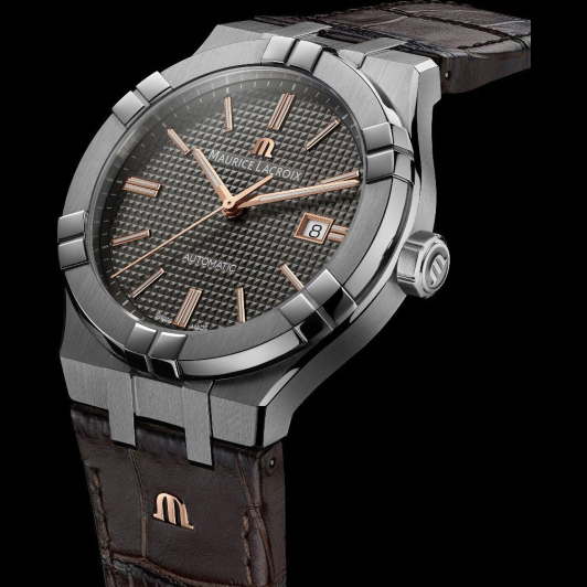 Механизм: Швейцарский механизм с автоматическим подзаводом ML115 доработан и декорирован мануфактурой Maurice Lacroix. Механизм отрегулирован в 3 положениях для повышения точности хода. Запас хода составляет 38 часа, частота колебаний баланса 28.800 vph или 4 Hz, 26 рубинов в качестве камневых опор колесной системы и паллет анкерного спуска.