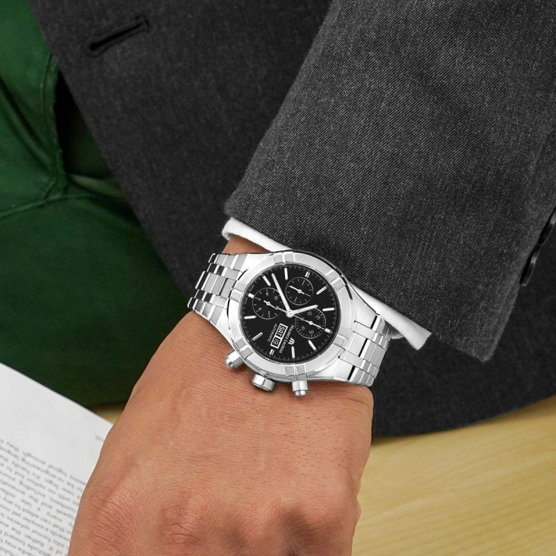 Корпус: Корпус и безель из матовой/полированной нержавеющей стали. Чёрный циферблат украшен гильоше, серебристые стрелки. Сапфировое стекло с антибликовым покрытием. Водонепроницаемость 200 метров, завинчивающаяся заводная коронка. Размер 44 мм.