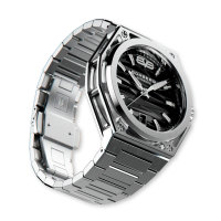 Корпус: Корпус изготовлен из стали марки 316L. Черный циферблат. Аппликация часовых индексов и стрелки с покрытием Super-Luminova®. Сапфировое стекло с устойчивостью к царапинам и антибликовым покрытием обеспечивает долговечность и удобство использования. Диаметр корпуса: 43 мм. Водостойкость: 50М.
