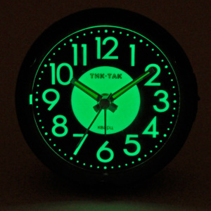 Материал и цвет: Корпус будильника сделан из качественного ABS пластика. Стекло – пластиковое. Циферблат будильника с крупными легко читаемыми цифрами. У данной модели будильника люминесцентные цифры, которые будут светиться в темноте некоторое время даже без нажатия кнопки подсветки.