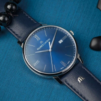 Ремешок: Ремешок из высококачественной кожи синего цвета, с прошивкой и украшен значком в виде логотипа бренда, классическая застежка – пряжка из нержавеющей стали, гравировка Maurice Lacroix.