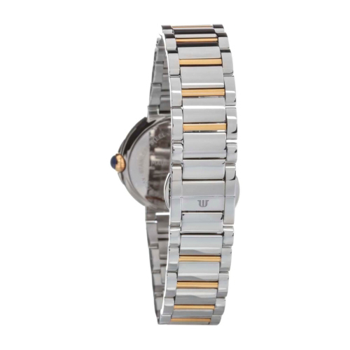 Корпус: Круглый корпус выполнен из нержавеющей стали 316L, поверхность с глянцевой полировкой до зеркального блеска. Безель с PVD покрытием цвета жёлтого золота. Гильошированный циферблат. Аппликация часовых индексов и стрелки с алмазной огранкой имеют золотое покрытие и полировку до зеркального блеска. Часовые индексы украшены бриллиантами. Сапфировое стекло с антибликовым покрытием защищает циферблат от царапин и обеспечивает отличную читаемость при любом освещении. Диаметр корпуса составляет: 32 мм. Водостойкость: 3 ATM.