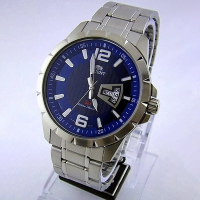 Корпус: Корпус этих часов выполнен из нержавеющей стали. Минеральное стекло. Синий циферблат. Стрелки серебристого цвета с люминесцентным покрытием. Водоустойчивость: 50 метров. Диаметр 43 мм.