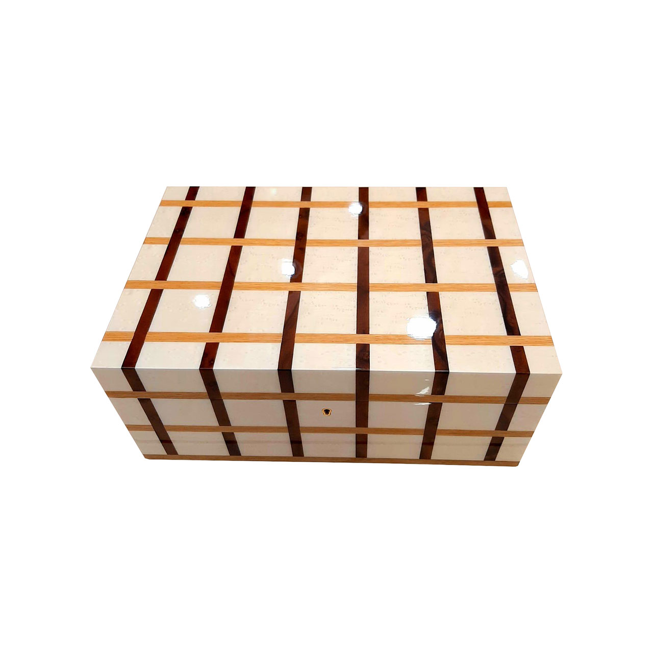 Материал: Шкатулки для хранения изготавливаются вручную с использованием пятнадцати производственных технологий. Используются несколько процессов обработки: тщательная шлифовка, оттачивание, лакировка. Внутри шкатулки покрываются бархатом или плюшевым вельветом, а позолоченные части обрабатываются раствором, препятствующим окислению. Корпус выполнен из натурального дерева.