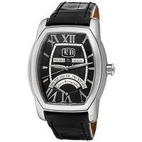 Функции: Индикация часов, минут и секунд при помощи центральных стрелок. Дата в положении 12 часов в стиле "большая дата". Ретроградный указатель дня недели в положении 6 часов.
